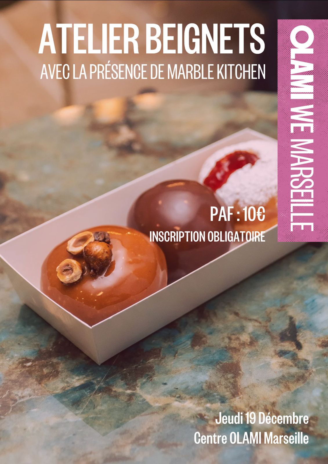 ATELIER BEIGNETS AVEC MARBLE KITCHEN