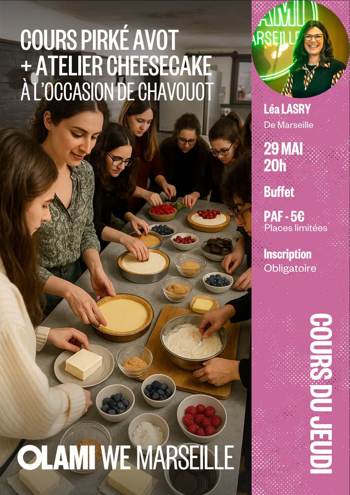 COURS PIRKE AVOT SUIVI D'UN ATELIER CHEESECAKE